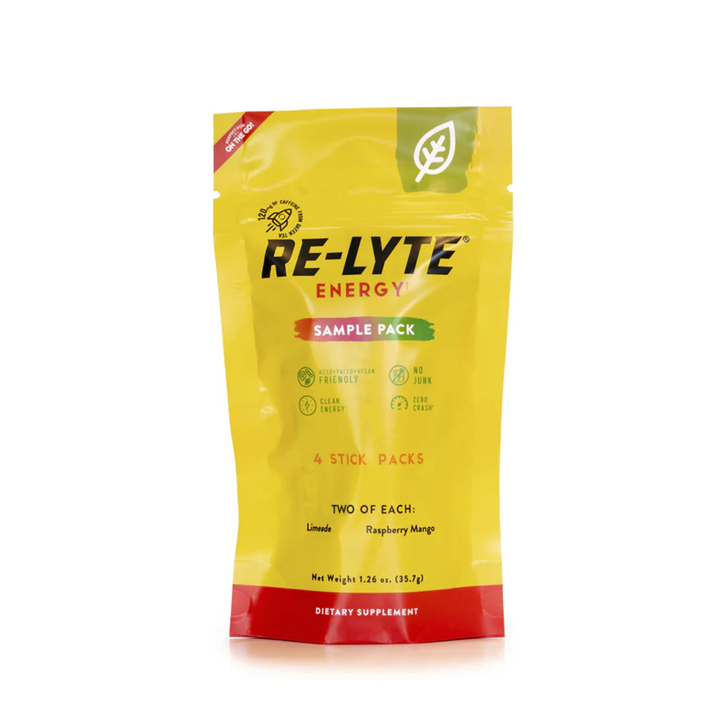The Re-Lyte® Energy Sample Pack includes 4 Re-Lyte® Immunity Stick Packs (2 of each flavor - Raspberry Mango and Limeade) you can easily stash in your purse, pocket, or glove box, so you’re ready to nurture your immune system on the go.