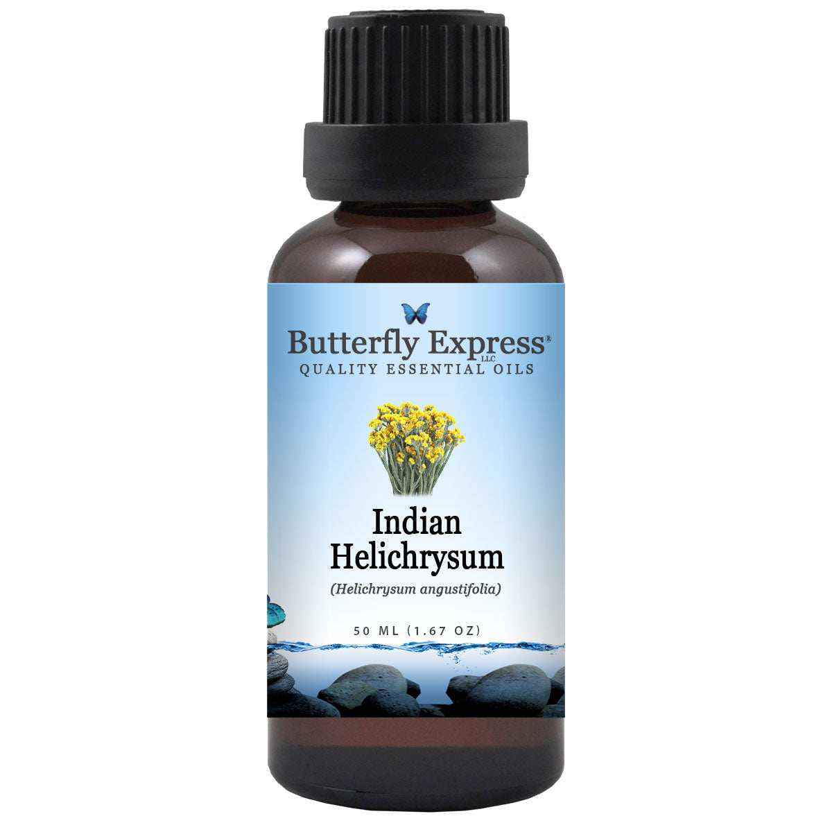Helichrysum Italicum and Helichrysum Angustifolia have the same therapeutic properties. Italicum is a higher quality oil and has a more mellow, pleasant aroma. It is also quite a bit higher in cost. Angustifolia is still very therapeutic and more practical for use in some applications as the cost is much lower. Indian Helichrysum is a Helichrysum angustifolia variety, but it has a sweeter, floral, honey-like fragrance compared to the sharp, cool eucalyptus‑camphor scent of the standard angustifolia variety.