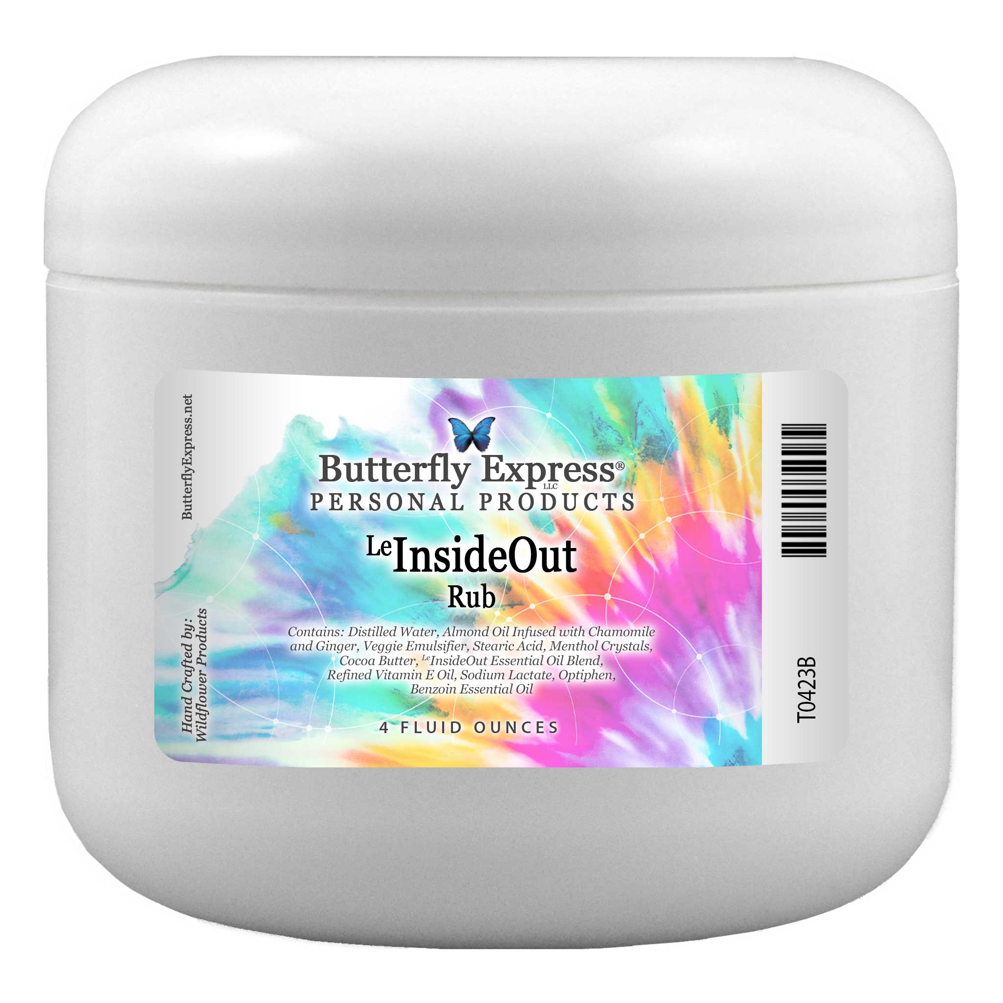 Distilled Water, Almond Oil Infused with Chamomile and Ginger, Veggie Emulsifier, Stearic Acid, Menthol Crystals, Cocoa Butter, LeInsideOut Essential Oil Blend (Anise, Cardamom, Cilantro, Fennel, Juniper Berry, Kanuka, Lemon, Lemongrass, Patchouli, Peppermint, Tarragon, Thyme Essential Oils), Refined Vitamin E Oil, Sodium Lactate, Optiphen, Benzoin Essential Oil